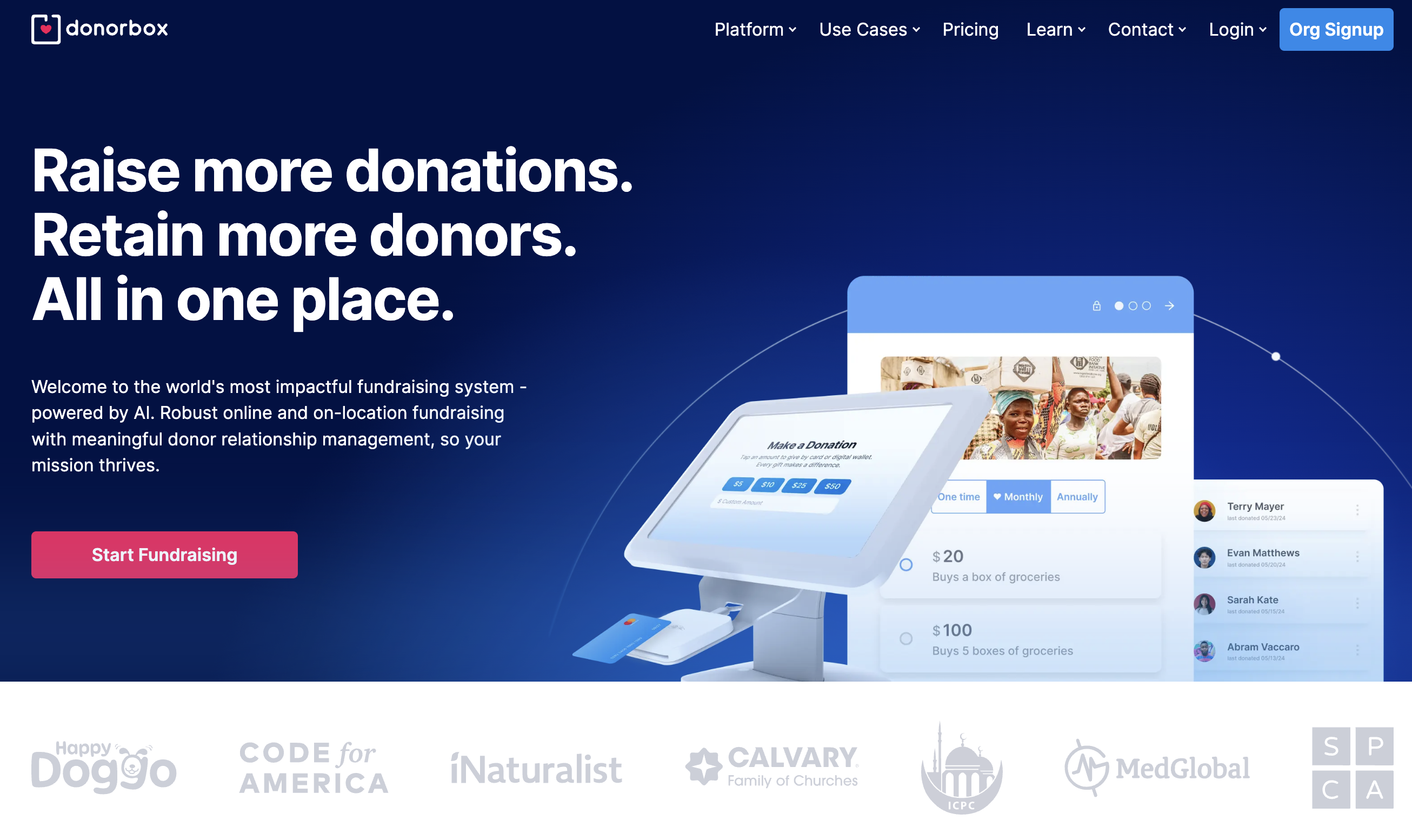 Donorbox is an online fundraising platform perfect for nonprofits that need powerful tools without upfront costs. Its pricing model is based on a modest platform fee, making it one of the most accessible online fundraising choices.
