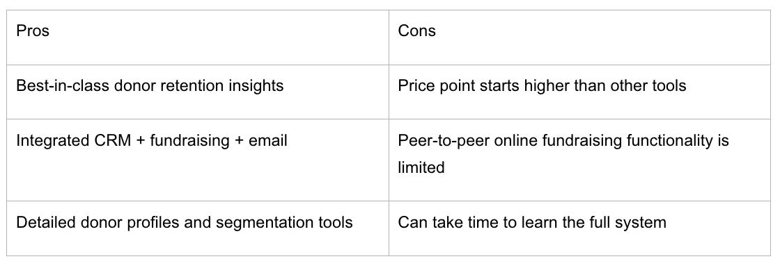 - Features That Matter: Peer-to-peer fundraising, text-to-give, CRM integrations, donor insights.
