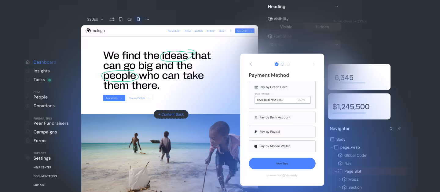 Donation forms are fully branded, flexible, and connected to your content, so supporters move from story to action without being sent away.